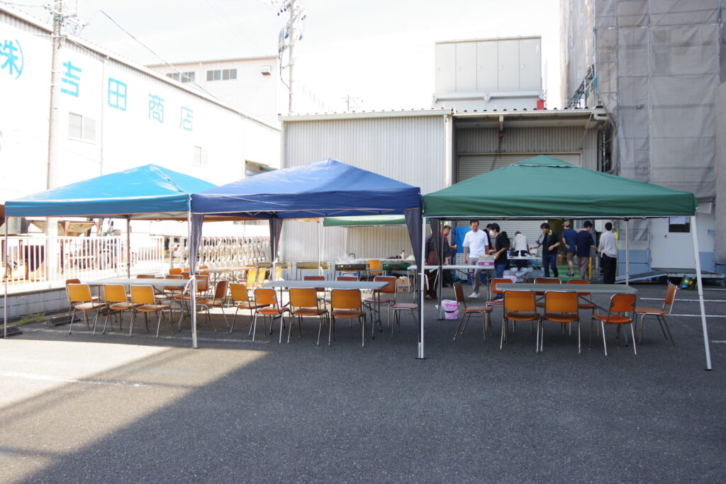 雨漏り対策工事のため、今年はタープ設営位置、コンロ設営位置がいつもと違います。