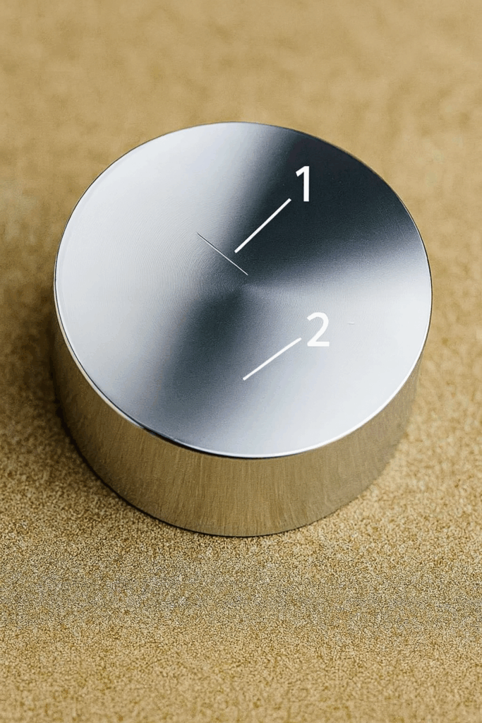 このマスターは、製品とほぼ同一形状に“わざと傷”をつけて、検査機が良品とNG品を正しく識別できるよう基準をつくるためのものです。
